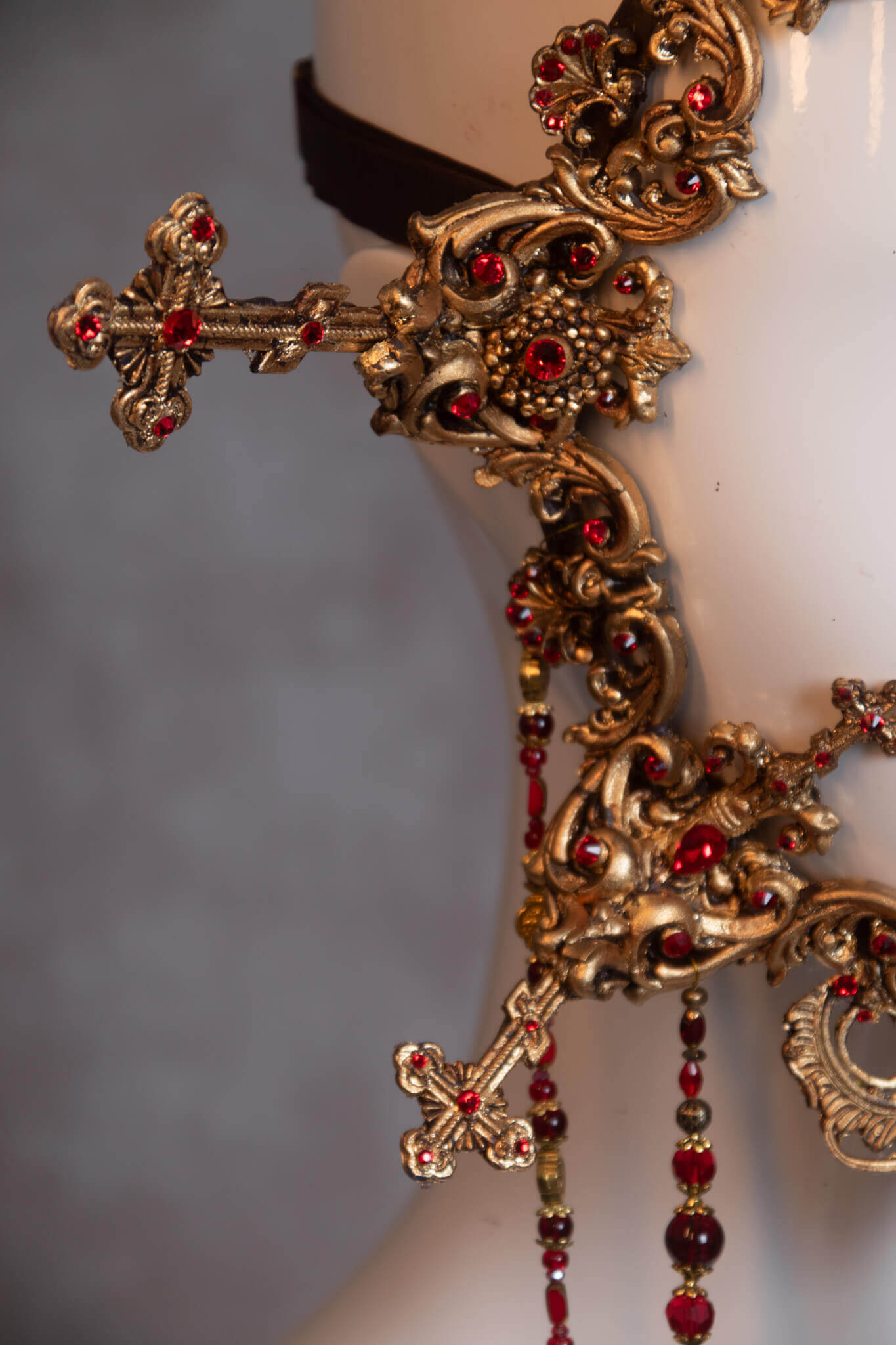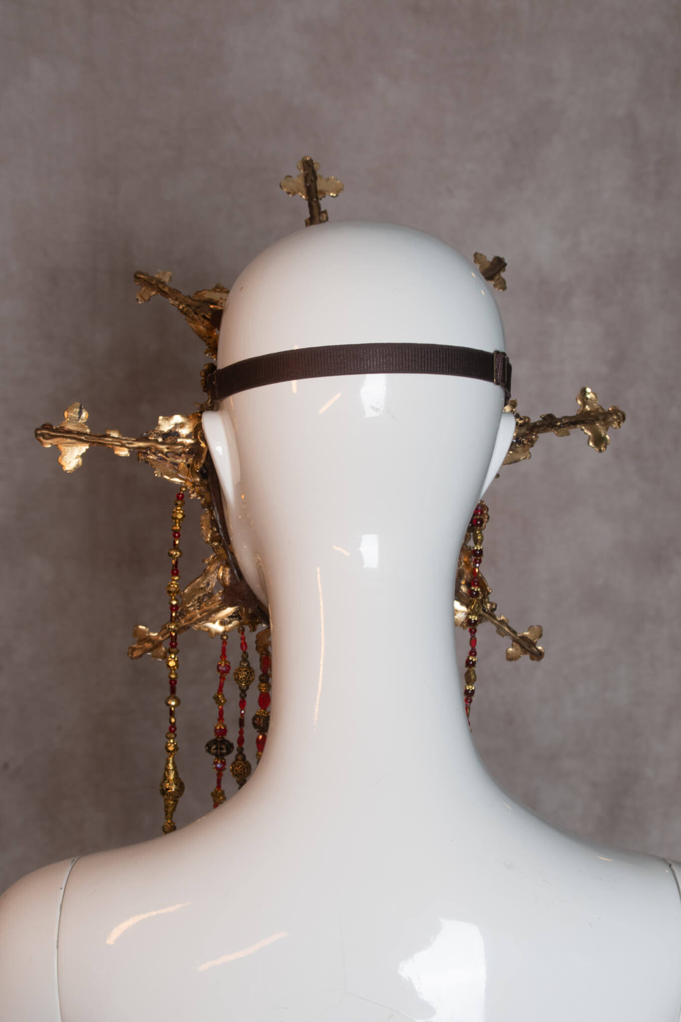 Introducing the exquisite handmade face framing Mask, a piece seen on the Halsey’s “If I Can’t Have Love, I Want Power” music video. This regal mask exudes an air of mystery and allure, perfect for those who seek to make a bold and unforgettable statement.