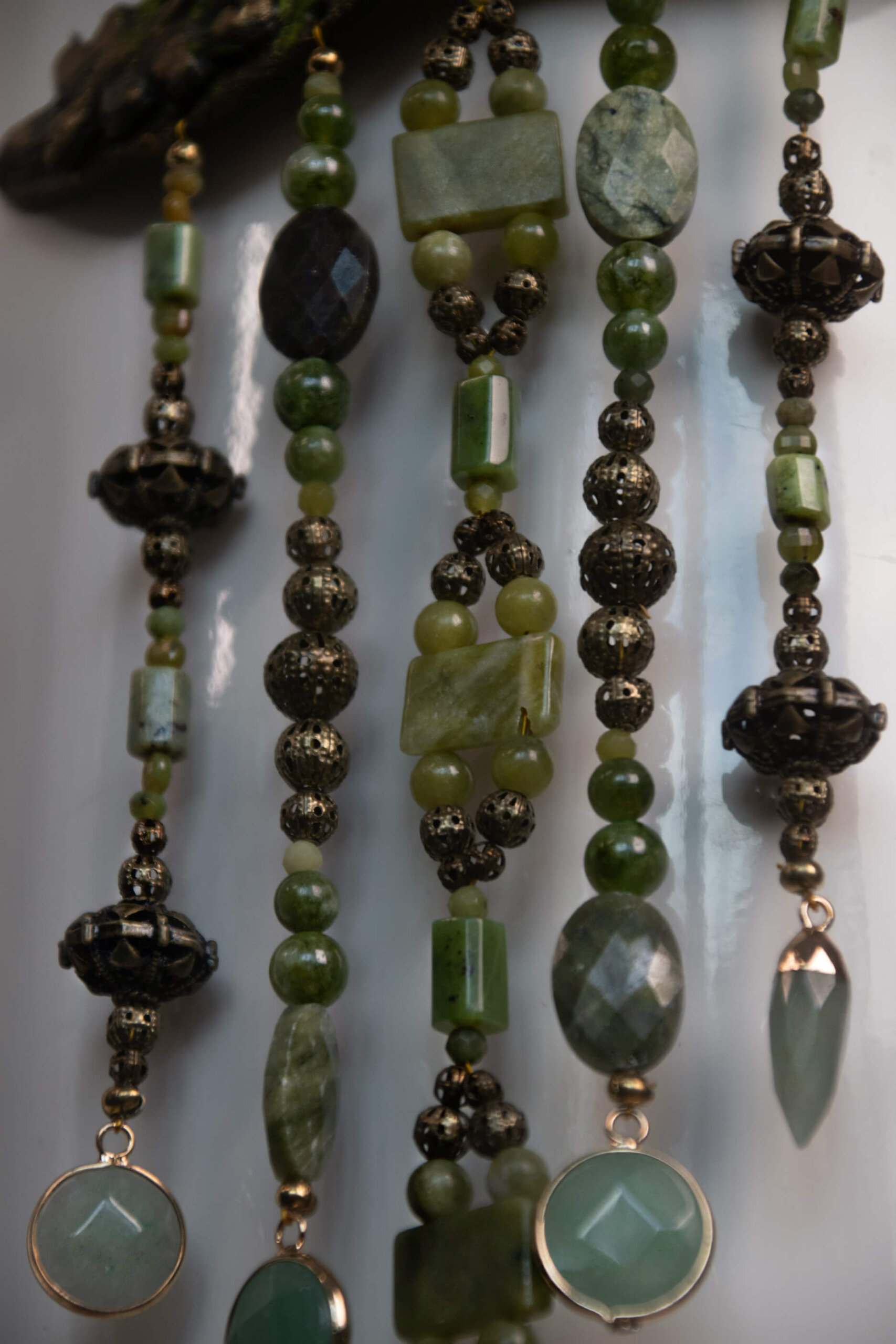 Finished with crystal, glass and iron beading.