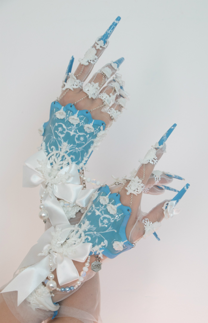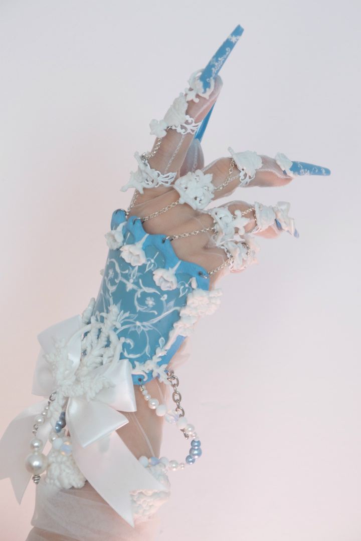 One-of-a-kind, enchanting faux porcelain hand jewelry set — includes two pieces (left and right).
